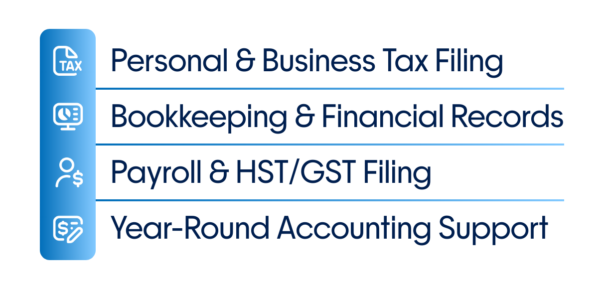 We prepare and file your personal taxes with precision, ensuring maximum deductions, accurate reporting, and CRA compliance.